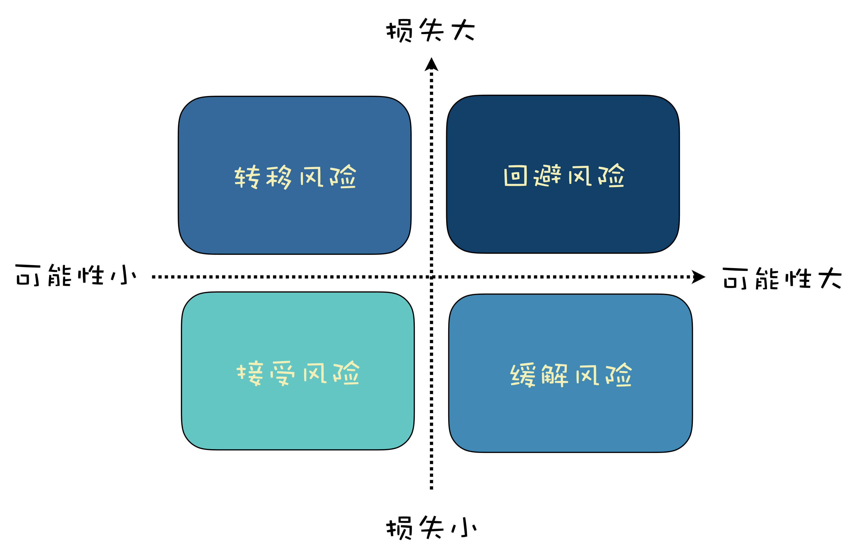 还有一些风险本身很难避免,或者去应对这个风险的成本超过风险发生后造成的损失,那么就没必要应对,直接选择承担风险后果就好了。