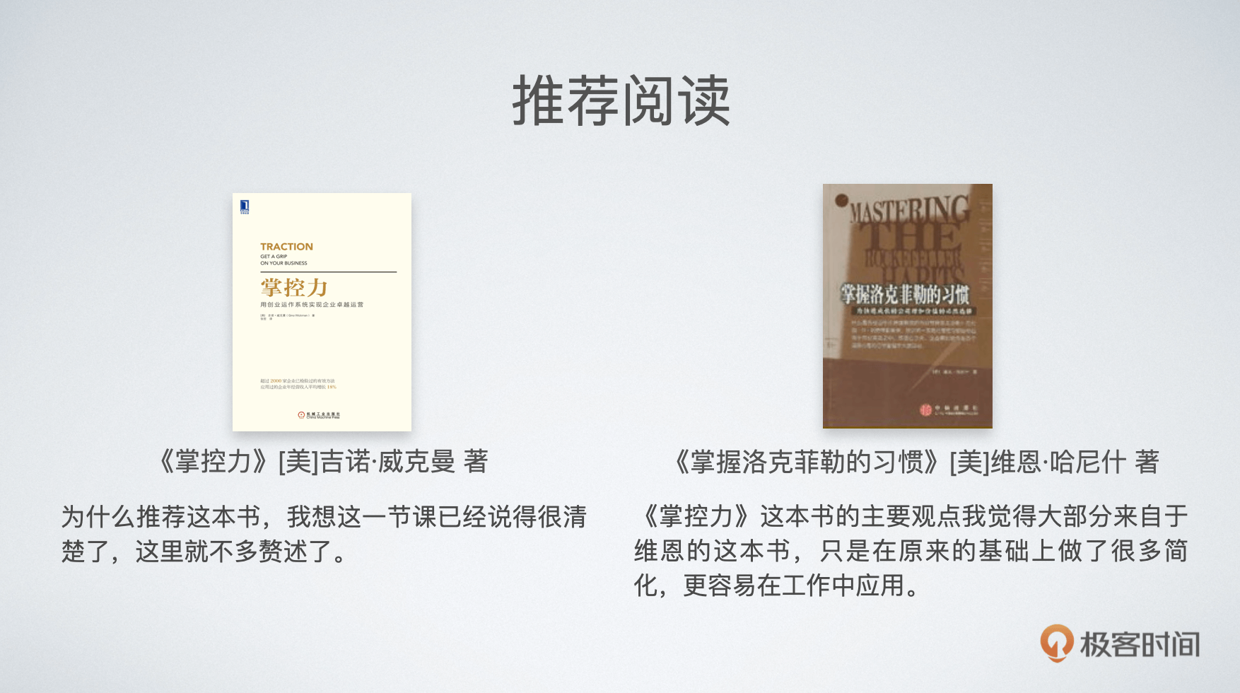 如果你还没有找到很好的方法,欢迎买本《掌控力》,按照我今天分享的步骤,梳理出来你团队的优先级事情,可衡量的数据,并通过有节奏的会议实现它们。祝你成功!