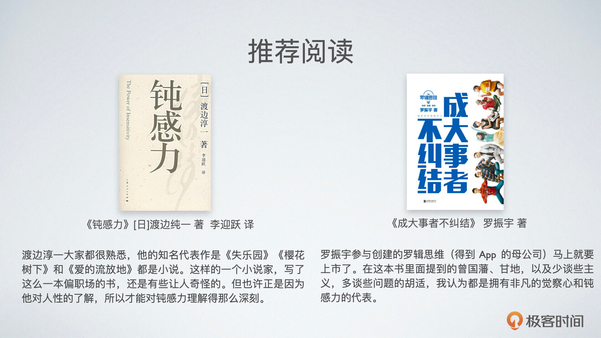 我觉得,对于个人来说,提升觉察心最简单最方便的方式就是“行万里路,读万卷书”,多做一些持续的、系统的、深度的输入,让自己在面对重大事情时,思考得更加全面,方案也更加正确。现在我们团队每月都要至少读一本书,我也经常推荐一些书籍给大家。