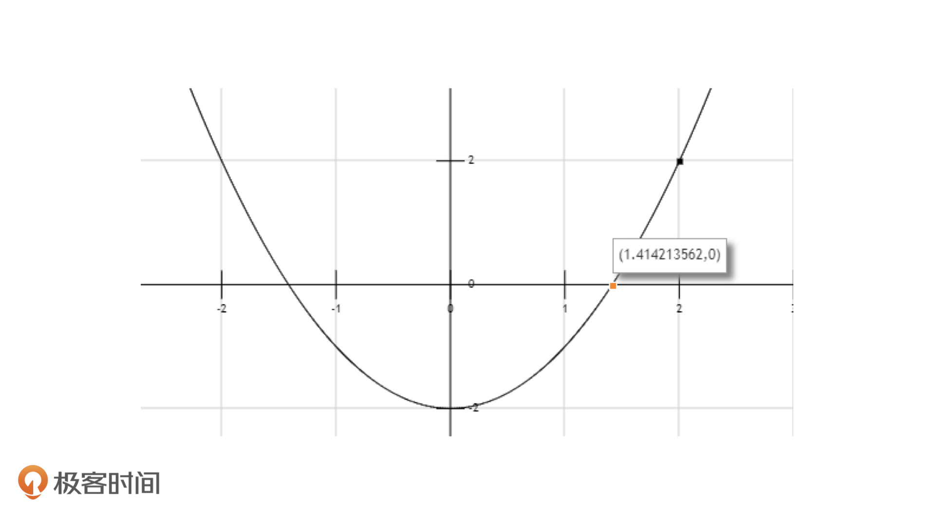 我们还是以方程$x^2-a=0$为例,假设此时$a=2$,那我们要求的就是$\sqrt{2}$的值。这个时候,$x^2-a=0$方程可以看作是一个函数$f(x)=x^2-2$,而我们想要求的值就是$f(x)=0$时x的值,也就是这个函数图像和x轴的交点。