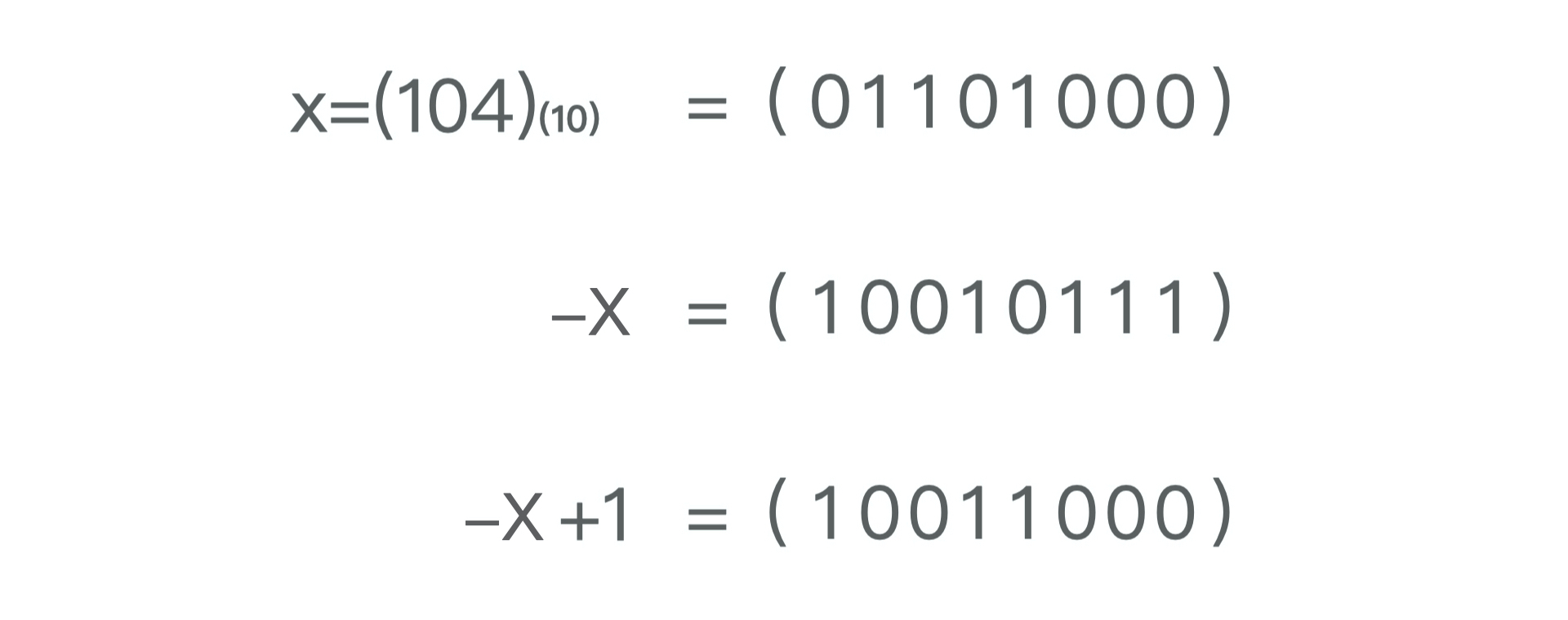 - 补码:正数的补码是它本身,负数的补码是反码加1。