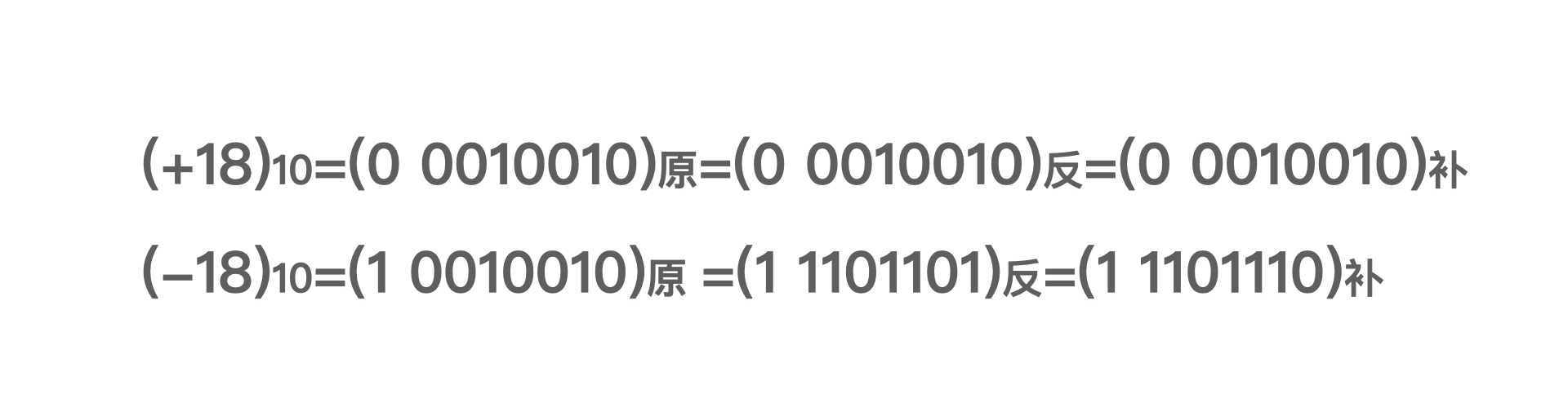 我们以8bit长度的整数为例,分别来看看18和-18的原码、反码和补码:
