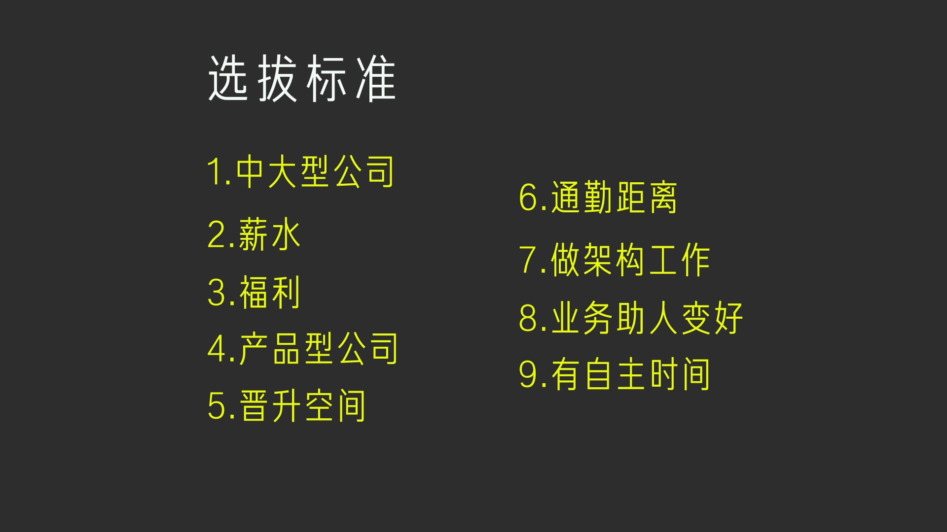所以,我们在选择Offer的时候,最核心的原则就是:从自己的需求出发,建立选择标准。