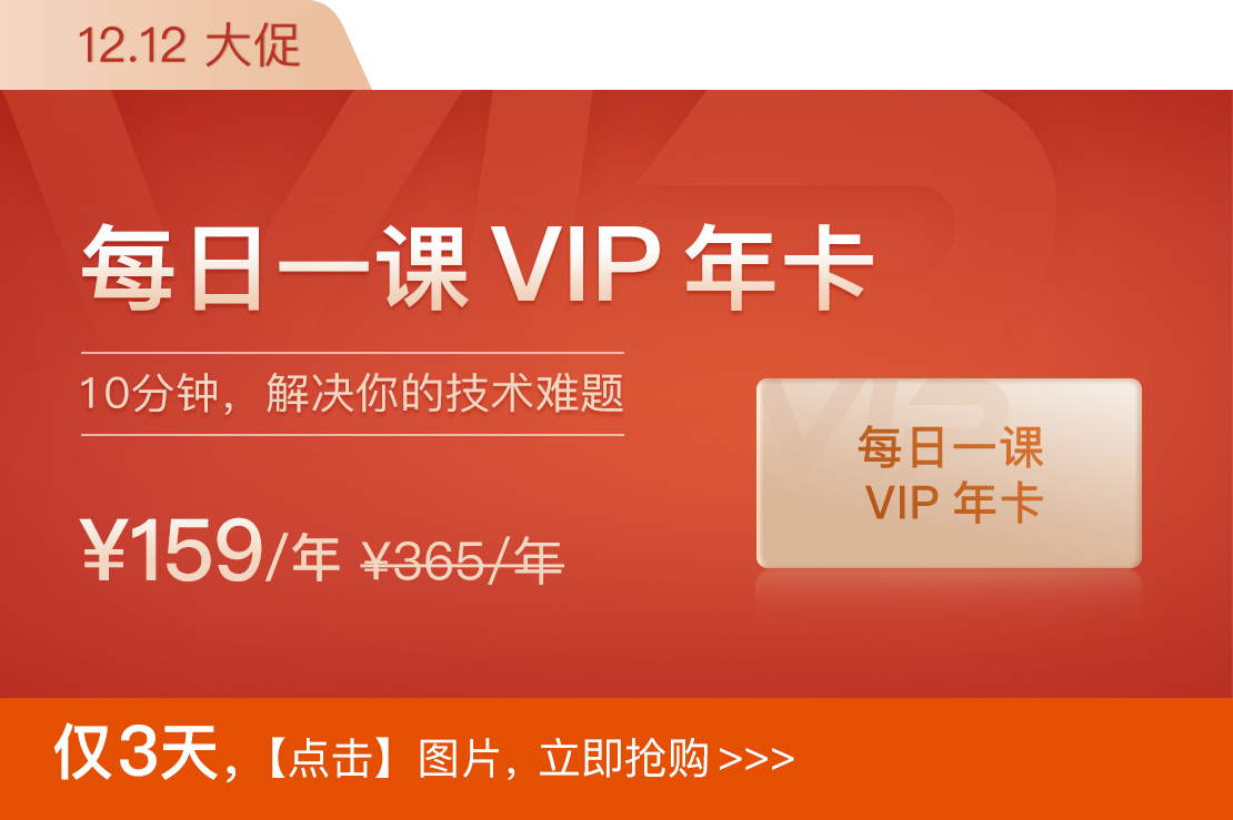 当然,如果你真的不小心错过了双十二当天的优惠,那也还有机会,12月13日到12月15日是每日一课的限时折扣活动,原价 ¥365 的年卡会员,到手只要 ¥159,虽然比不上双十二,但也是全年难得的优惠力度了。有兴趣的话就点击文末链接,查看更多更详细的内容吧。