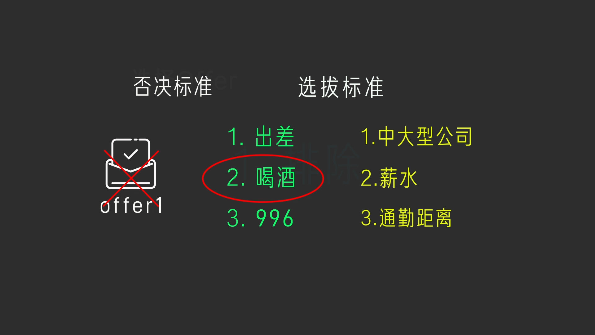 第一个步骤是排除,你要拿着否决清单,来分析每一个Offer: