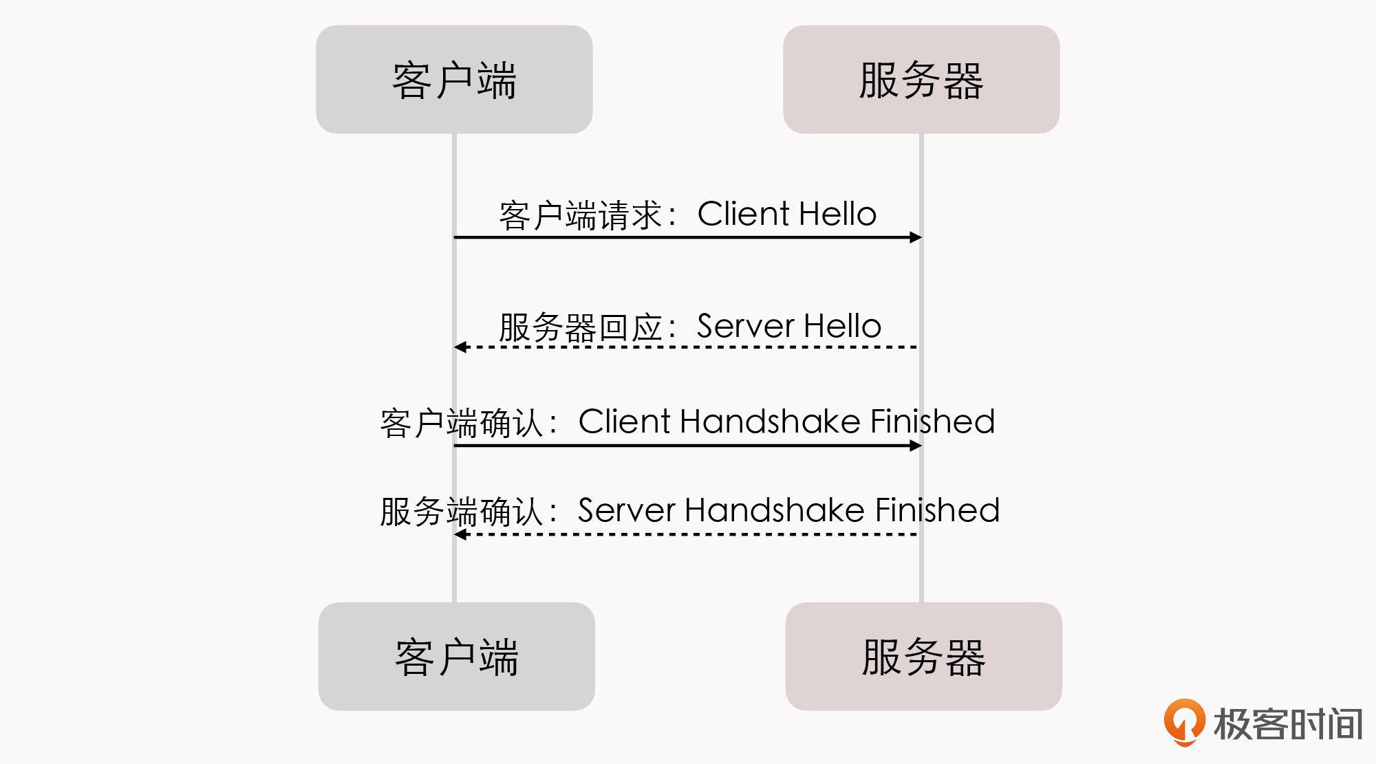 TLS 1.2在传输之前的握手过程中,一共需要进行上下两轮、共计四次的通讯。我们来看一下这个握手过程的时序图: