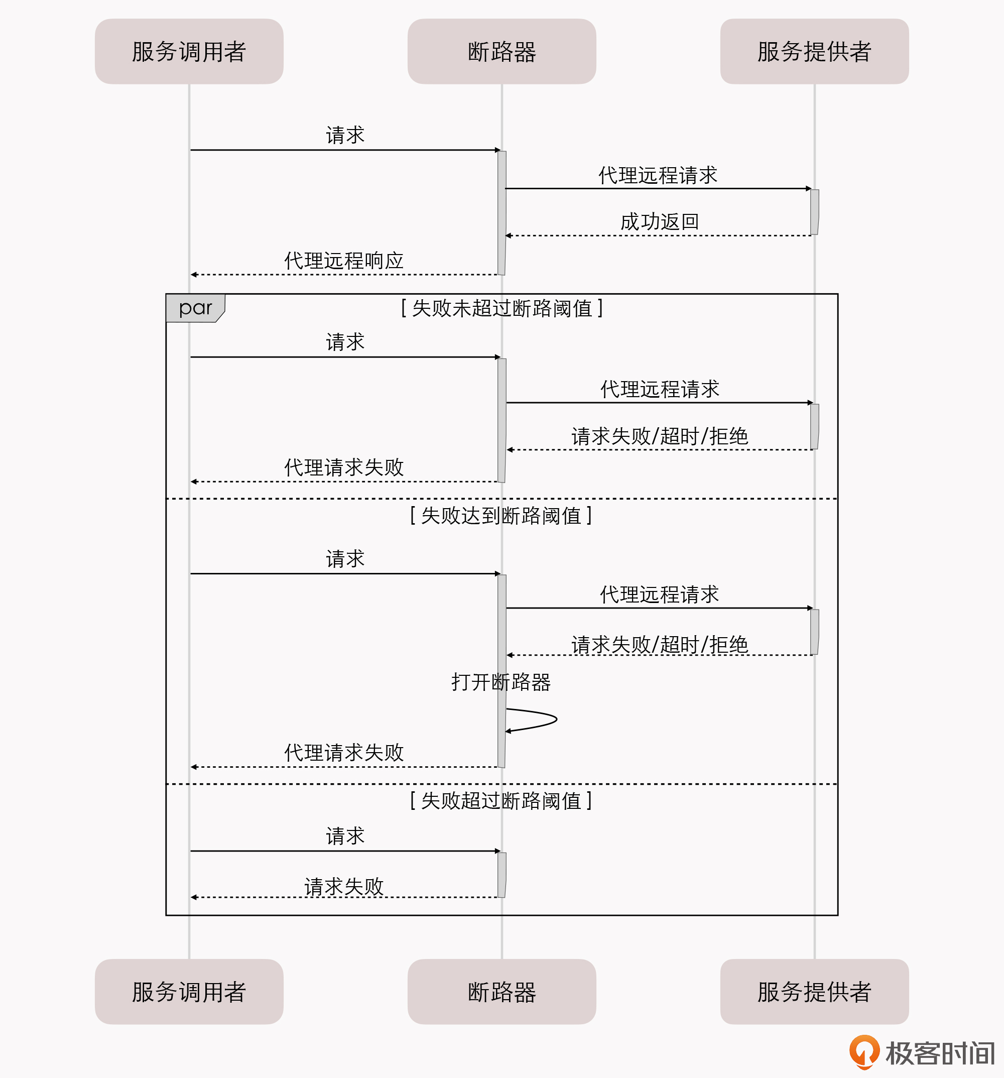 断路器模式的工作过程,可以用下面的序列图来表示: