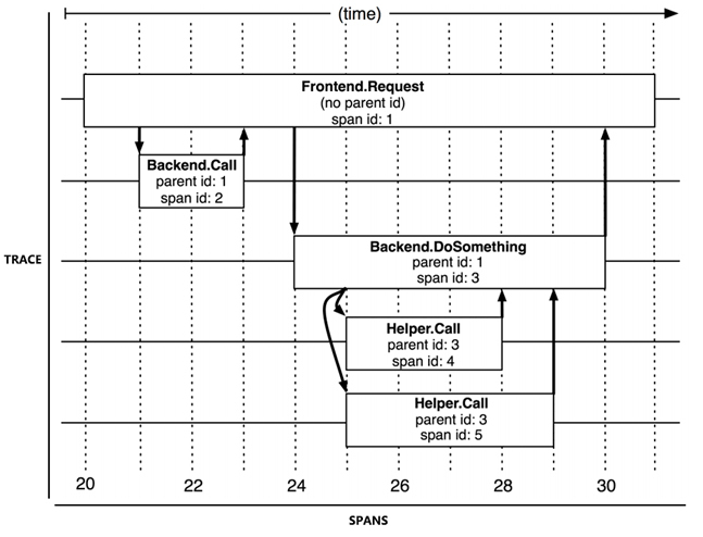 为了有效地进行分布式追踪,Dapper提出了“追踪”与“跨度”两个概念。