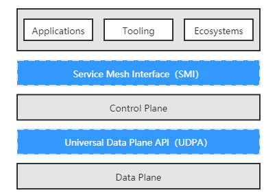 - SMI规范提供了外部环境(实际上就是Kubernetes)与控制平面交互的标准,使得Kubernetes及在其之上的应用,能够无缝地切换各种服务网格产品;