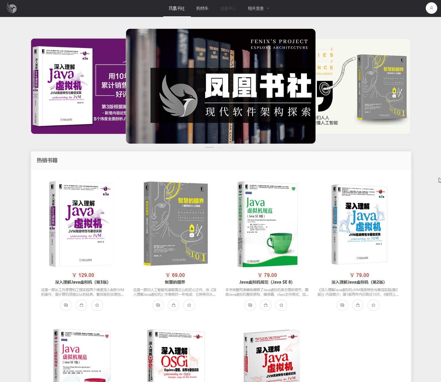 - 从互联网已部署(由Travis-CI提供支持)的网站(由GitHub Pages提供主机),直接在浏览器访问: http://bookstore.icyfenix.cn/。