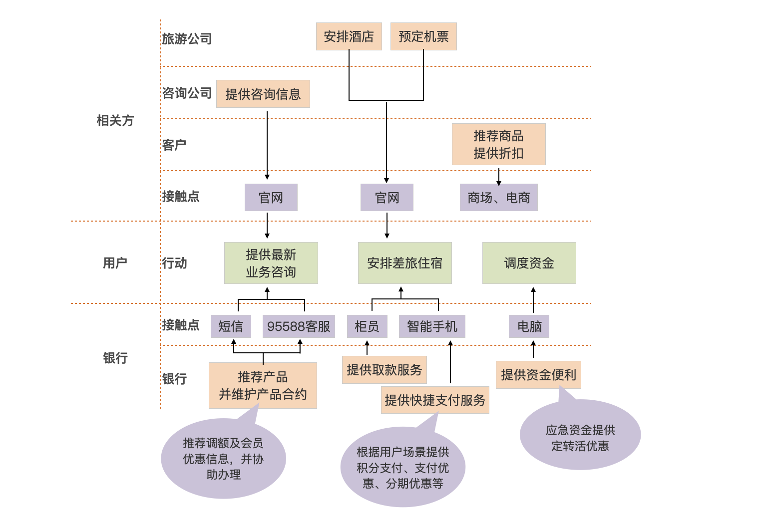 - 第三步:根据用户对服务的需求,分析涉及的服务提供方和服务触点;
