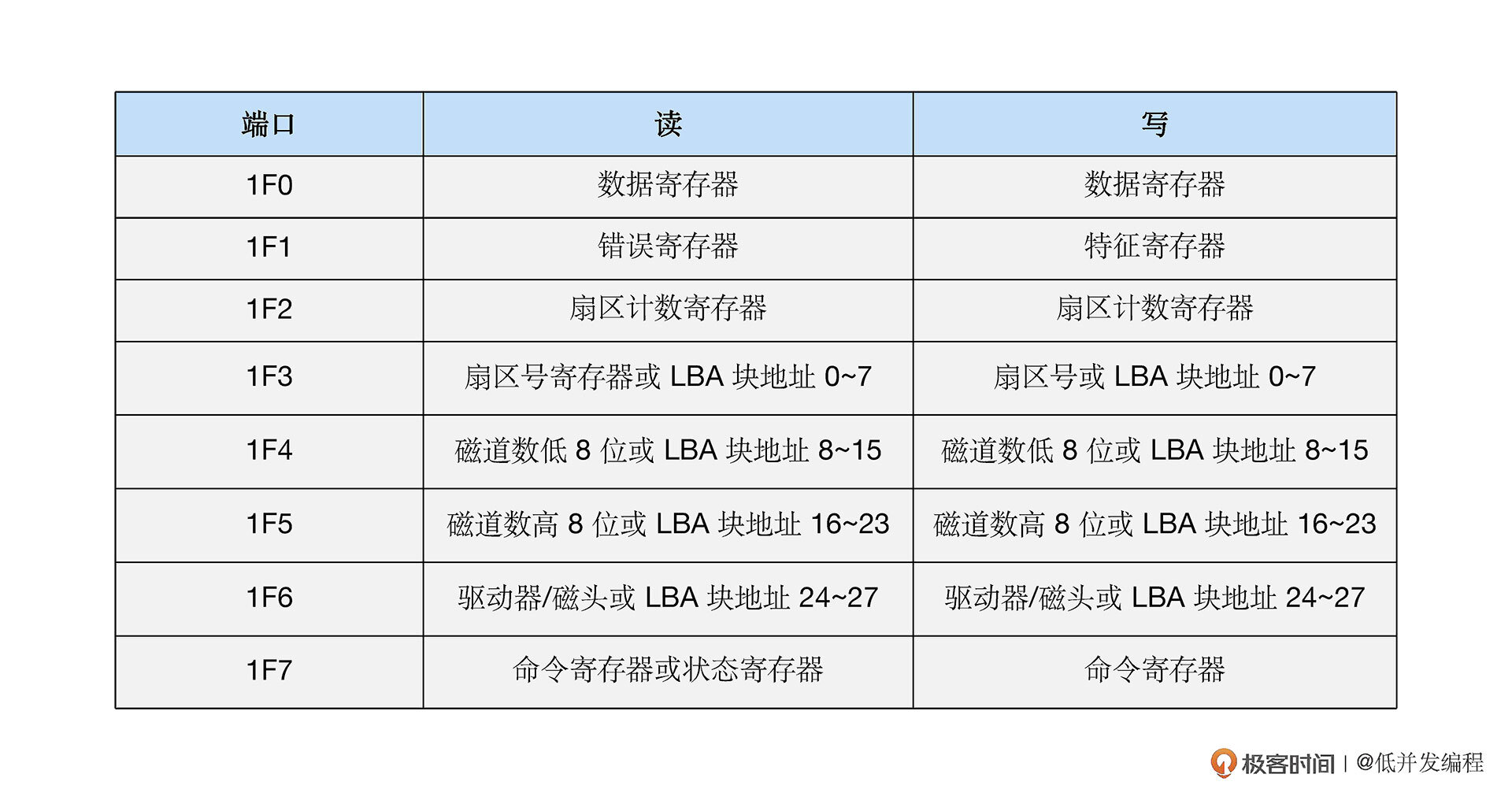 最常见的就是读硬盘了,我们来看硬盘的端口表。