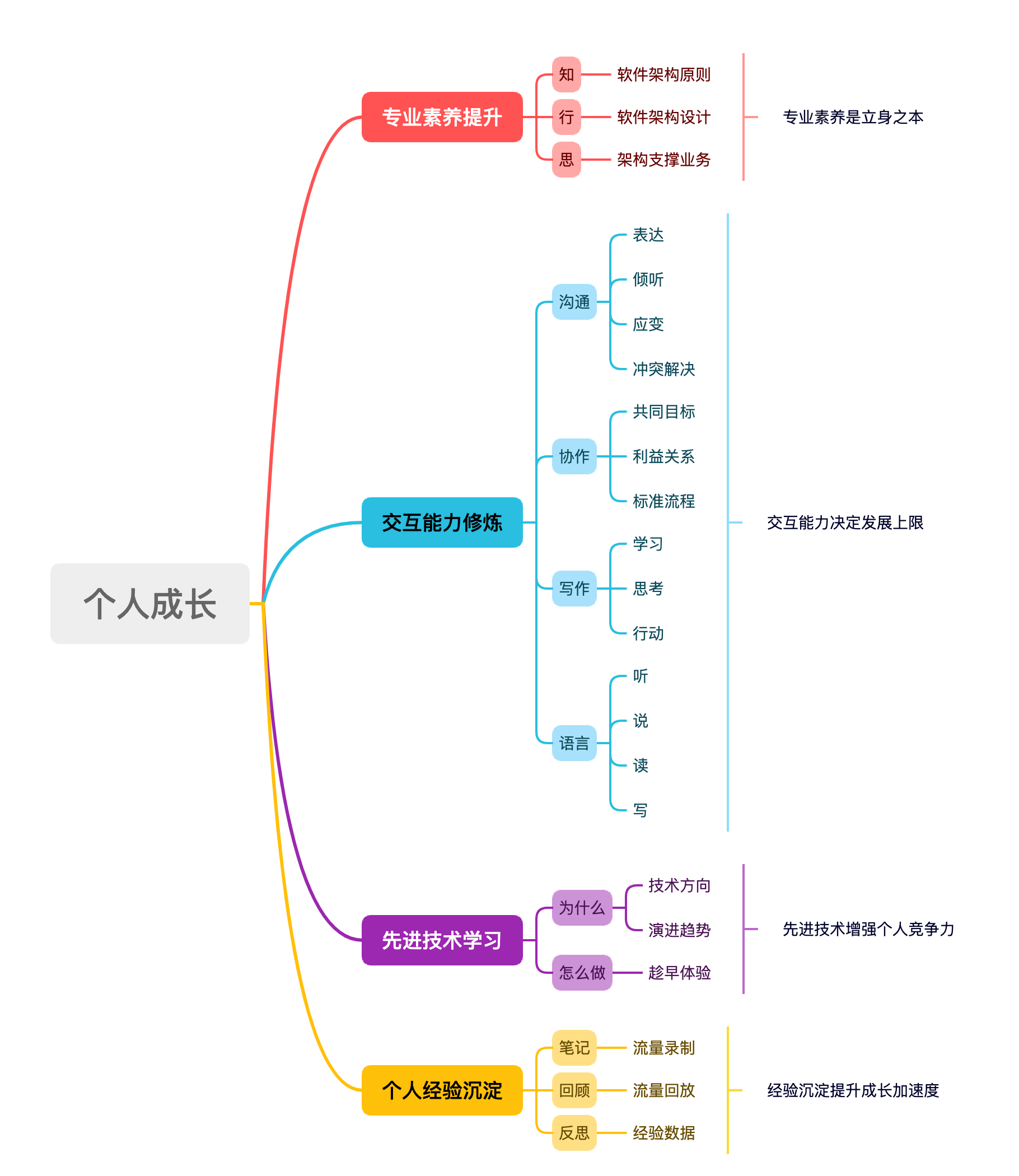 好了,个人成长框架的四个方面就讲到这里,接下来让我们对上面的内容做一个总结。